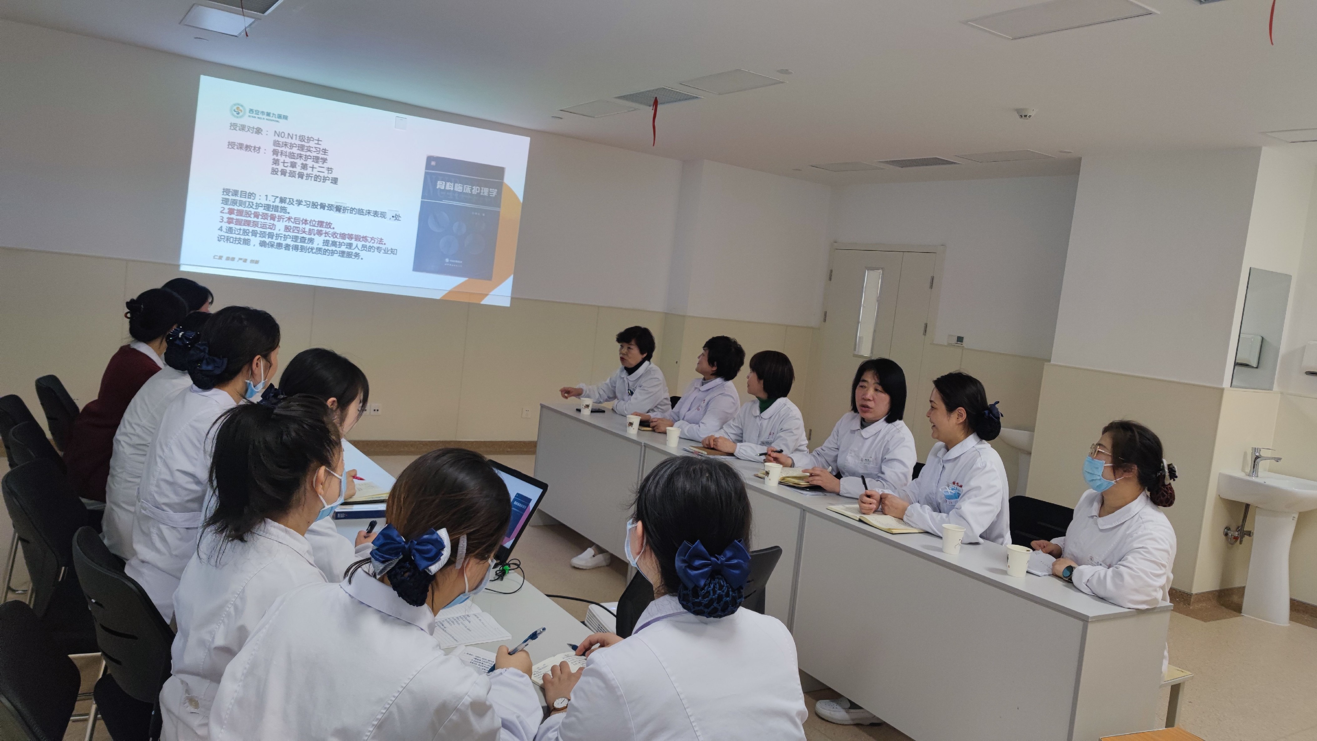 为进一步规范护理教学,提高教学质量,提升带教老师和实习生的综合能力,更好地推进护理教学工作,2月27日下午,骨科开展了教学查房工作。外科大护士长周会菊、内科大护士长贺屏、重点部门大护士长张玉琴、门急诊系统大护士长苏婧莅临指导,骨科护士长王亚飞护士长主持,全科护士及实习生共同参加。