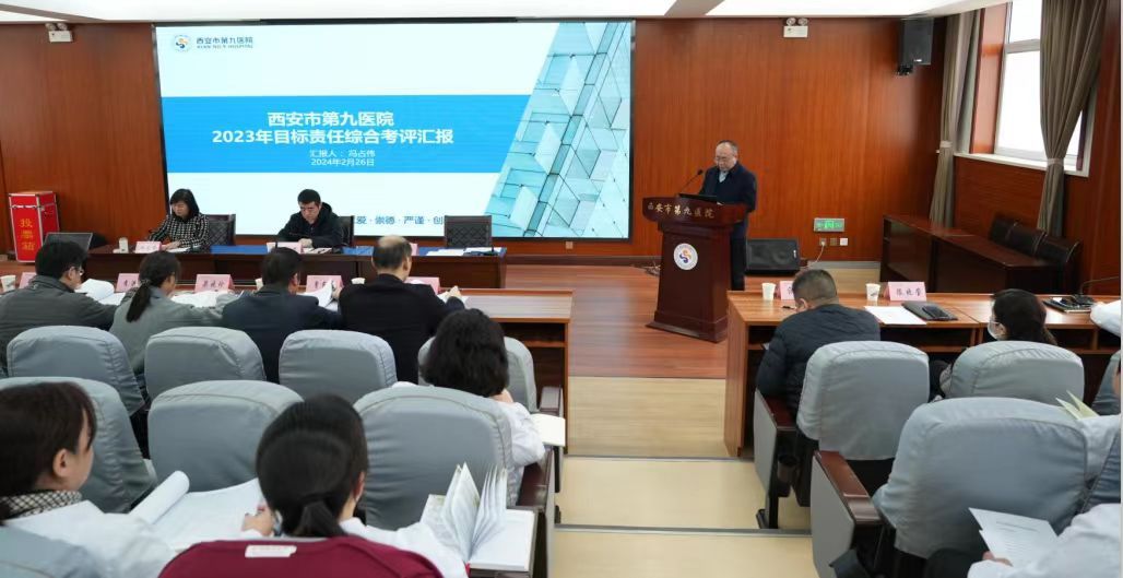 按照市卫生健康委统一安排部署,2月26日下午,由市卫生健康委副主任丁力带领考评组一行18人到西安市第九医院,对医院2023年度目标任务完成情况进行考评测评。