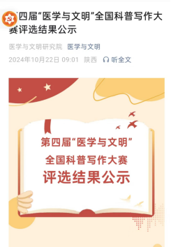 陕西师范大学医学与文明研究院主办的“医学与文明”全国科普写作大赛,是国内医学人文领域的一项重要赛事。第四届大赛吸引了来自全国各地的医学专家、人文社科领域学者以及科普创作者的热烈响应和积极参与,共征集到80多个单位选送的95篇参赛作品。作品涵盖医学多个领域,展现了医学与文明的内涵。评审专家和学者对作品进行了审阅和评估。