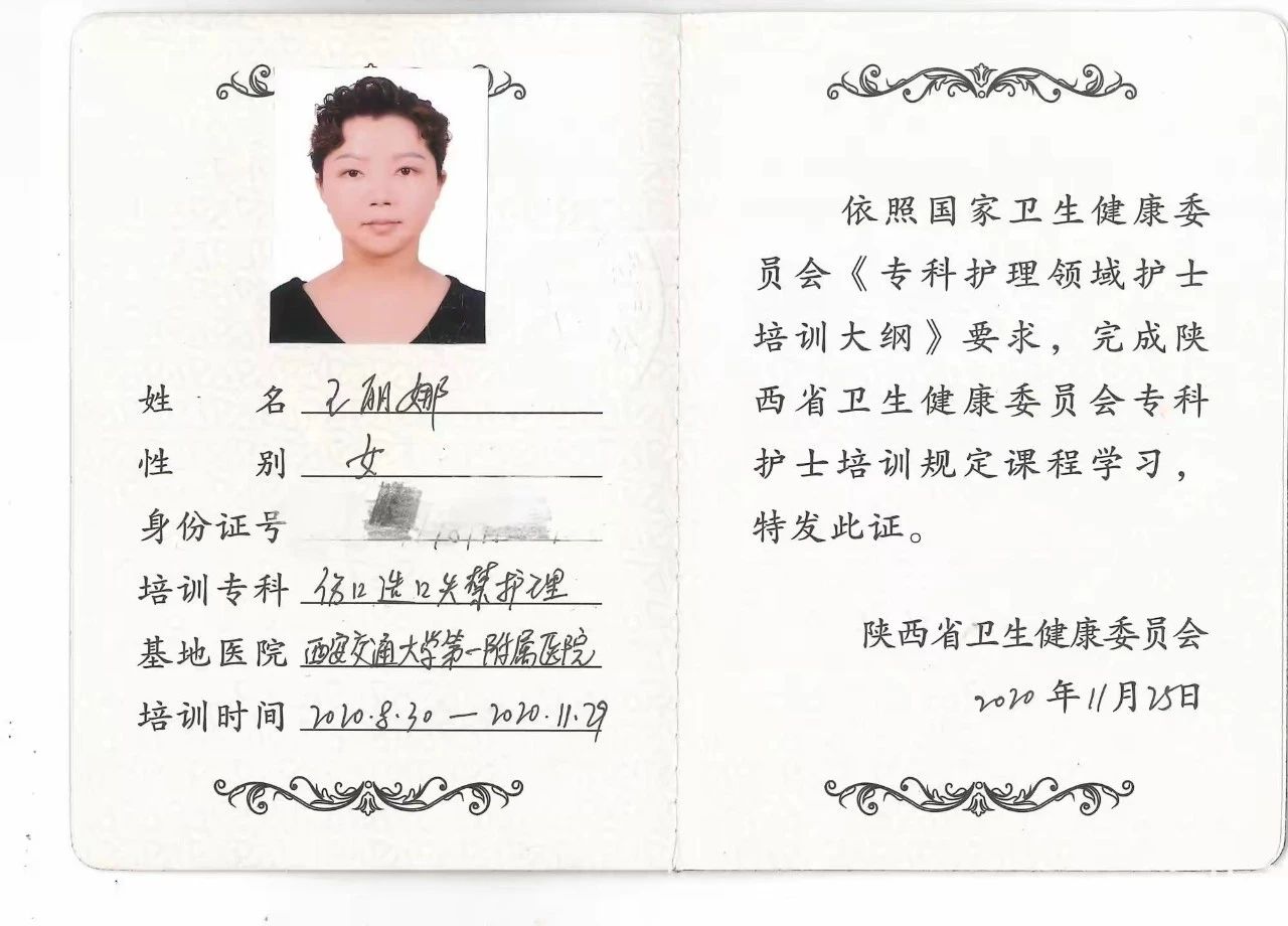 陕西省伤口造口失禁专科护士证和烧伤整形专科护士证。