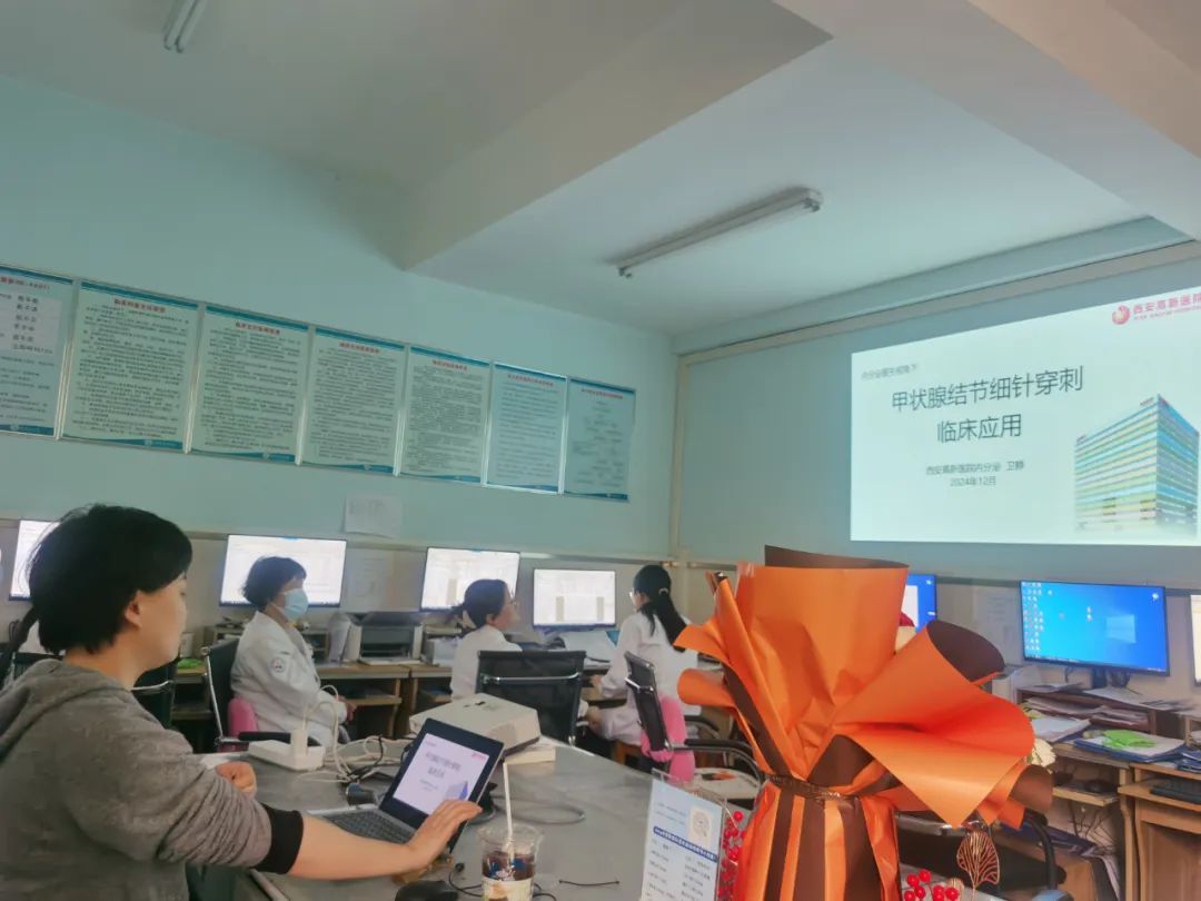 为进一步推动甲状腺结节疾病的规范化诊疗流程,促进甲状腺疾病多学科协作发展,西安市第九医院内分泌科近日牵头主办了甲状腺结节诊治院级交流会。本次会议特邀高新医院内分泌科主任卫静主任医师担任学术指导,围绕甲状腺结节穿刺技巧、学科建设及多学科协作等议题展开深入研讨,系统展示了“资源共享、精准诊疗”的协作成果,共同探索甲状腺疾病管理的新模式。