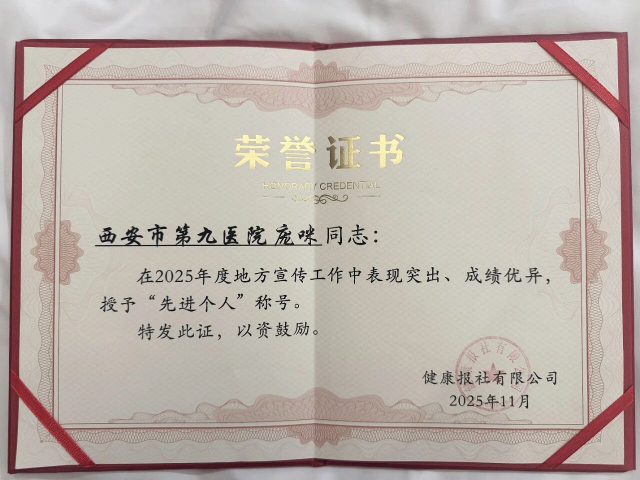 在健康报2025年地方宣传工作评选中,西安市第九医院荣获“优秀集体”称号,这一成绩的取得,是医院全体同仁共同努力的结果,更是对医院长期以来坚持正确宣传导向、务实开展健康科普工作的认可与鼓励。
