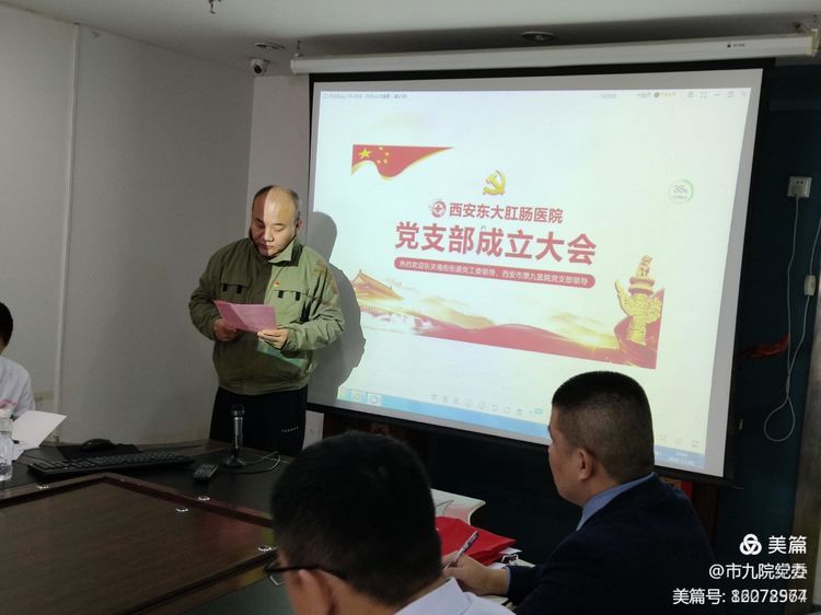 第二项,东关南街街道党工委杨云副主任宣读了《关于同意成立西安东大肛肠医院党支部的批复》。