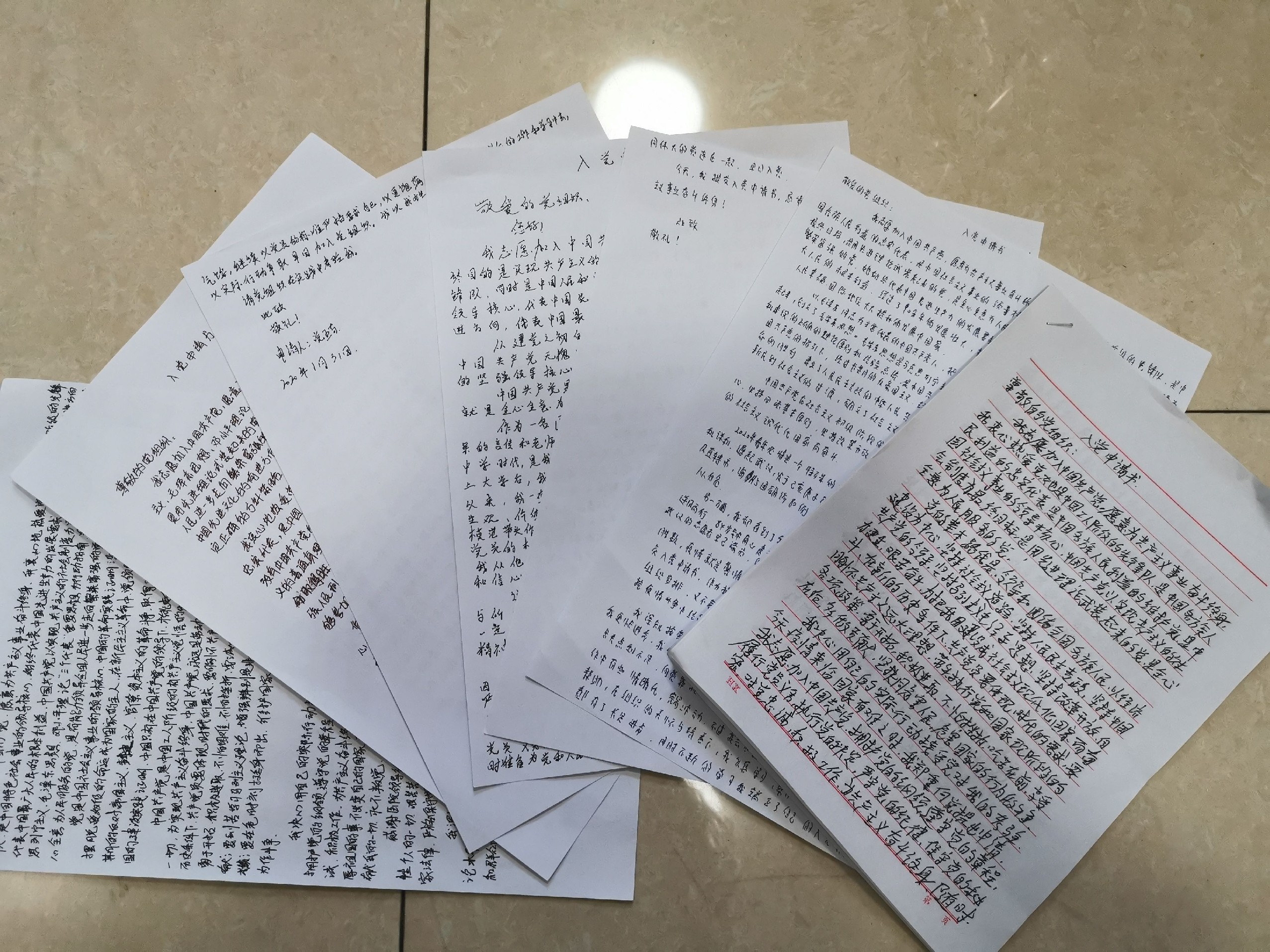 在党员刘彩梅同志的引领下,鲁亚伟副主任以及4名护士郑重的写下了入党申请书。这些用宾馆信纸书写下的申请书虽长短不一,但字里行间,情真意切,催人奋进。