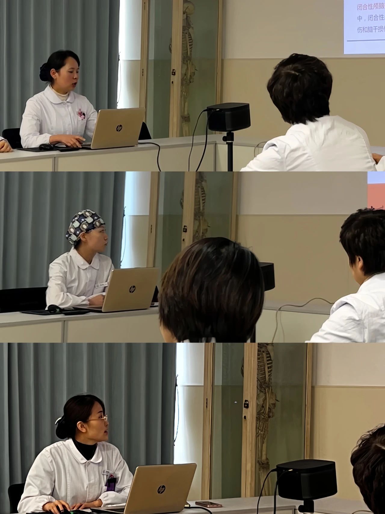 神经外科陈静、手术中心护士张楠、骨科责任护士刘改梅汇报病例,依次介绍了患者的病史、护理评估,对现存的护理问题、护理措施、护理效果、病人的需求等方面进行了梳理。