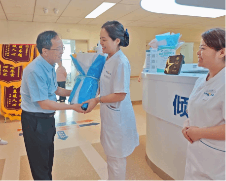 慰问心血管病院,冯占伟院长亲手将鲜花送到护士手中,深情地说:“护理工作是医院工作的重要组成部分,你们每天穿梭在病房之间,专业的技能和温暖的服务,为患者守护健康。你们的辛勤付出,患者看在眼里,我们也记在心里,感谢你们为医院发展和患者康复作出的卓越贡献!”同时,他还嘱咐全体护理人员继续秉持初心,医院大力支持推进护理学科建设和人才培养,祝愿我院护理事业蓬勃发展。