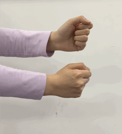5、平握拳,指间关节伸直位,呈平拳状。整套动作连贯进行,每日4次,每次7-10组。