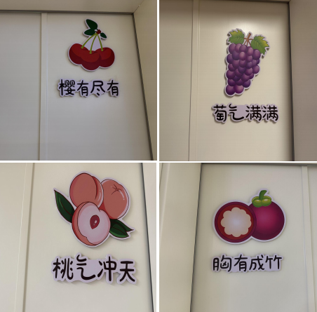 走进病房,你会看到病房门上张贴着各式各样的水果图案,如苹果、葡萄、桃子等,每个病房都以其对应的水果命名,既醒目又好记。这一设计不仅美观大方,更重要的是为患者提供了一种直观、有趣的病房识别方式,特别是方便老年患者记忆,避免了因迷路或记错房号而带来的困扰。