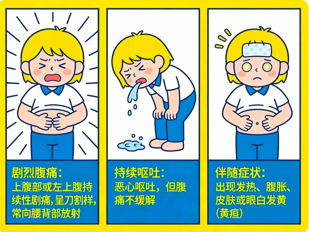 若在饱餐或饮酒后突发以下症状,需高度警惕急性胰腺炎,并立即就医: