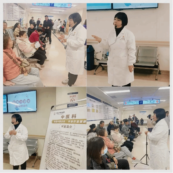 为弘扬中医药文化,普及实用中医健康知识,助力居民树立“未病先防”理念,我院中医科全新推出的“中医公益科普小讲堂”于2025年11月3日在影像中心候诊区正式启动!首场讲座由科主任许海莺主讲,许海莺主任从中医科特色诊疗服务切入,系统介绍了科室在内科、骨科、妇科常见病及亚健康状态干预等领域的优势,吸引了等待区患者及家属参与,现场反响热烈。