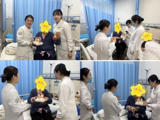 当生日蛋糕带着温暖的烛光被捧入病房,当中药香囊的淡淡药香伴着祝福递到老人手中时,两位老人惊讶之余,眼眶瞬间湿润。在“祝您生日快乐”的歌声中,老太太紧紧握住护士的手,老爷子也连声道谢,声音哽咽:“没想到在医院,还能这样过生日……谢谢你们,想得这么周到。”那一刻,病房里洋溢着不是家人胜似家人的温情,疾病带来的阴霾被这突如其来的惊喜与感动驱散了不少。