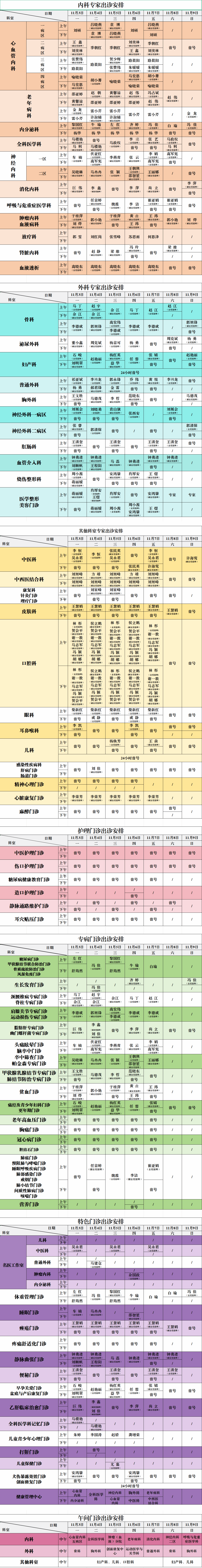 西安市第九医院门诊出诊安排(11.10-11.16)