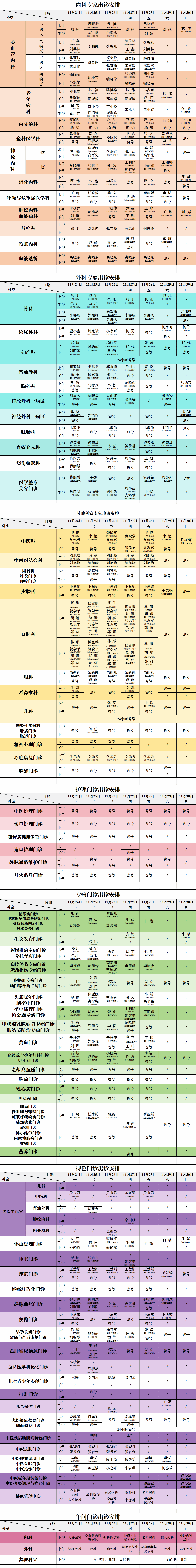 西安市第九医院门诊出诊安排(11.24-11.30)