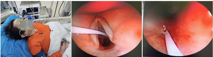 由于患者何女士气道严重阻塞,科室发挥呼吸介入技术精细操作,清除坏死物并留置导管,实现局部高浓度给药,为治疗成功奠定了基础。