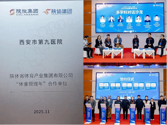 2025年11月30日,“体卫携手·科学体重·共筑健康”2025年体重管理论坛在西安成功召开。论坛汇聚了国内顶尖的临床与科研力量,参会单位包括北京大学第一医院、上海体育大学、国家体育总局重点实验室、西安交通大学第一附属医院等权威机构,产业界代表有陕西体育集团与李宁集团。我院健康管理中心金航军主任组织,内分泌科牛瑜主任带队,参加了本次论坛的授牌仪式、多学科对话沙龙和病例分享环节。西安市第九医院被授予“陕体省体育产业集团·体重管理年”合作单位,此项殊荣既肯定了我科在代谢与体重管理领域的专业实力,也标志着医院与省级体育产业及体重管理项目进入深度合作的新阶段。