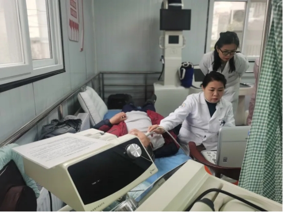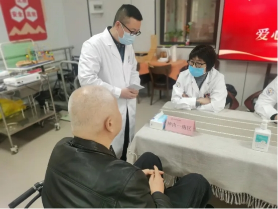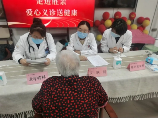 义诊现场,专家们细致询问长者健康状况,提供专业诊疗建议与健康指导,并开展血压等健康指标监测。超声医学科医务人员为10余位有需要的长者完成超声检查;皮肤科主任赵晓玲深入房间,为行动不便的老人进行皮肤检查与个性化康复指导,让关爱零距离。此次活动共服务50余位长者,受到中心负责人与老人的一致好评。