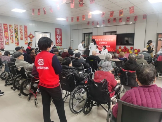 新年伊始,联合体迅即启动服务实践。2026年1月14日上午,西安市第九医院健康管理中心组织老年病科、神经内科一区、皮肤科、超声医学科等医护团队,走进联合体成员单位——胜亲医养中心,开展“义诊送健康,公益暖人心”主题活动,为长者们送去2025年第一缕健康关怀。