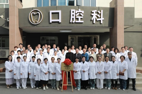 在全场期待中,院领导班子与口腔科主任侯立鹏、护士长张娴及科室骨干共同为新址揭牌,红绸落下,崭新牌匾熠熠生辉,定格科室发展的重要里程碑。