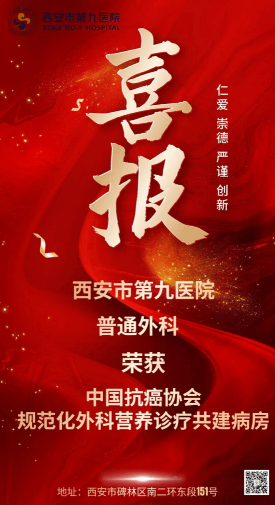 西安市第九医院普通外科为国家住院医师规范化培训外科基地,西安市普通外科医疗质量控制中心,西安市临床重点专科,西安市医学优势专科;西安医学院普通外科专业研究生培养基地,西北胃肠微创外科专科联盟单位,西北减重及代谢专科联盟单位,陕西省胃肠道间质瘤专科联盟单位,陕西省疝和腹壁外科专科联盟单位;西安市伤口造口失禁专科护士培训基地。