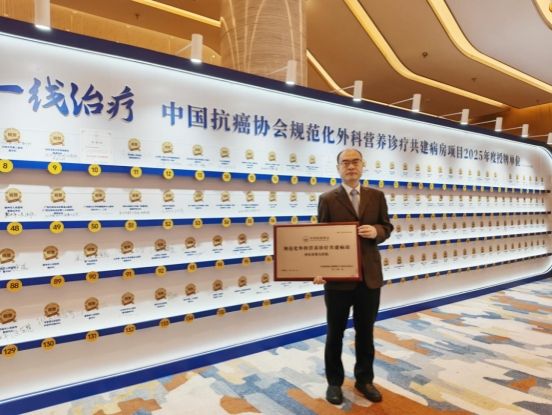 近日,由中国抗癌协会肿瘤整合支持治疗委员会主办的“规范化外科营养诊疗共建病房项目2025年度总结暨2026年度启动会”在成都盛大召开。我院普通外科凭借在外科营养规范化诊疗领域的深厚积累与不懈精进,历经一年的严谨申报、精心筹备、专业评审及答辩,成功获批“规范化外科营养诊疗共建病房” 称号,并在大会现场接受授牌。同时,科室还收到中国抗癌协会肿瘤整合支持治疗委员会专程致送的致谢函,对科室在项目推进过程中彰显的专业素养与出色组织成效给予高度认可与充分肯定。