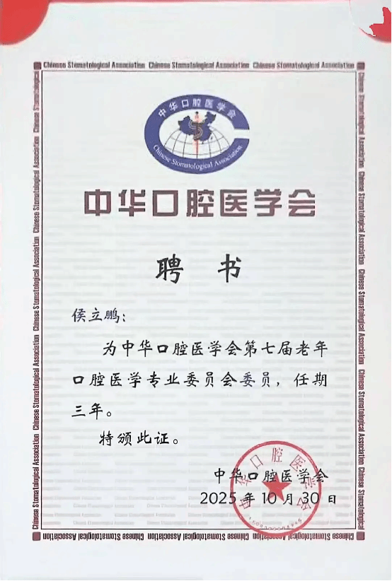 2025-11-06口腔科主任侯立鹏获聘为中华口腔医学会——老年口腔医学专业委员会委员