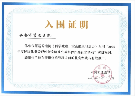 近日,从国家卫生健康领域传来喜讯,在由中国家庭报社联合中国医院协会、人民网·人民健康共同举办的 “2025年度健康体重管理创新案例及公益科普作品征集活动”中,西安... -
