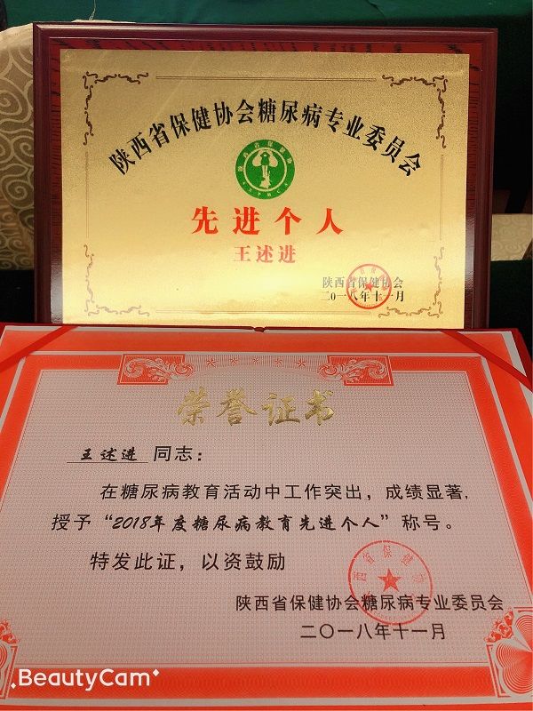 11月10日召开的陕西省保健协会糖尿病专业委员会年会上,市九院内分泌科王述进主任因在糖尿病教育活动中,工作突出,成绩显著,被评为“2018年度糖尿病教育先进个人”称... -
