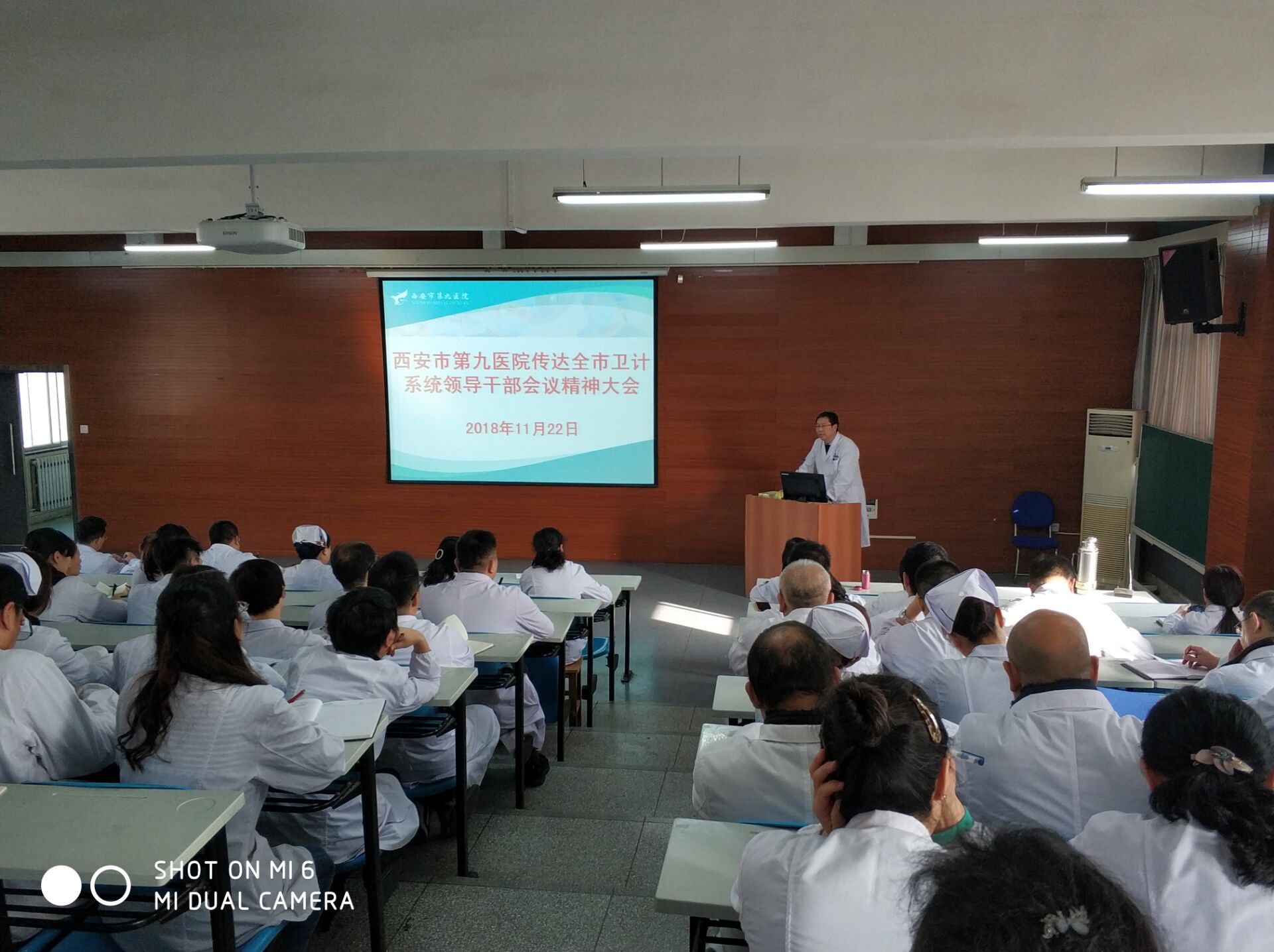2018年11月22日下午,西安市第九医院召开中层以上干部会议,传达全市卫计系统领导干部会议精神。院党委委员、领导班子成员、支部书记及全体中层干部参加,会议由院长党... -