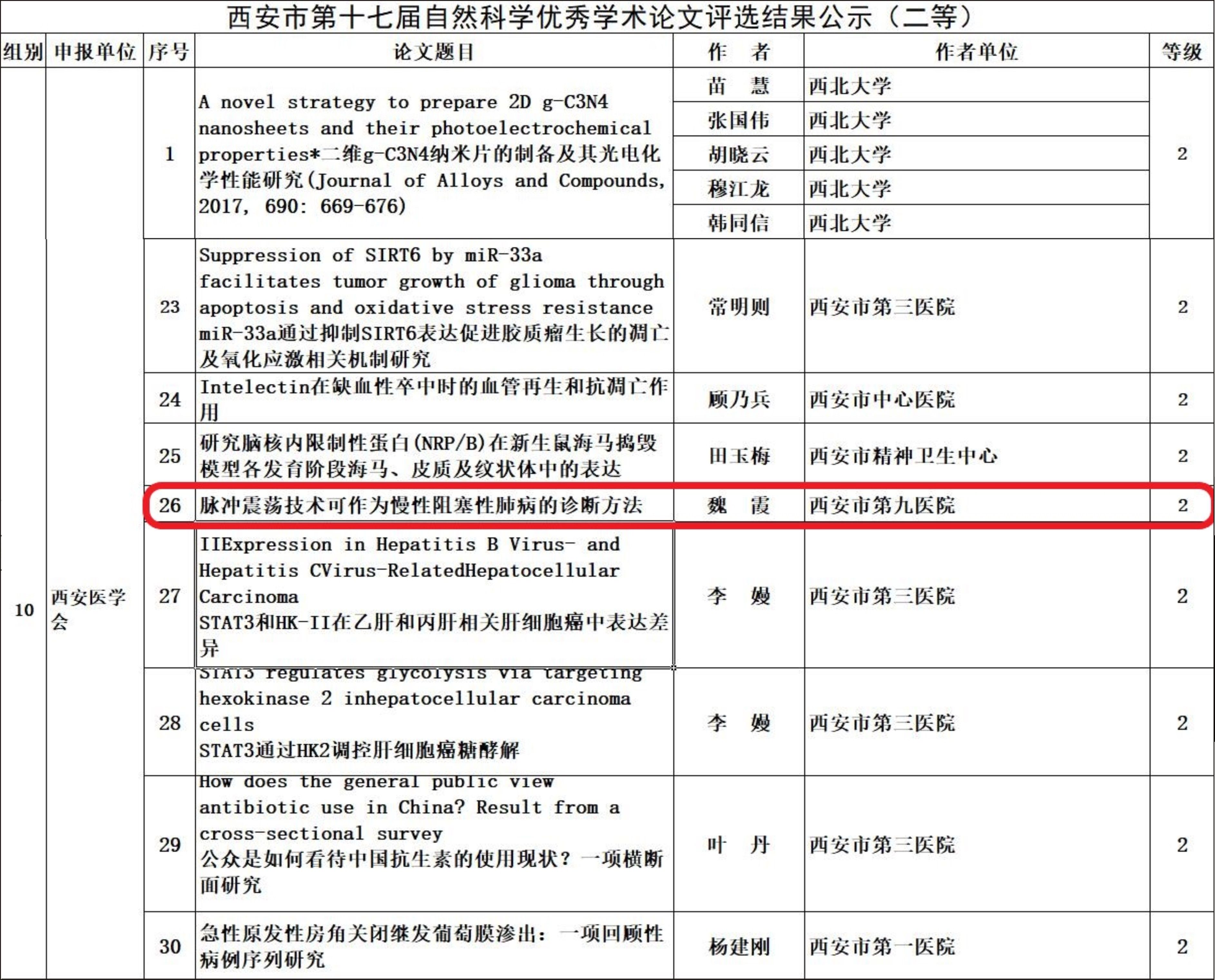 2019-01-22【喜讯】我院呼吸与危重症医学团队荣获“西安市第十七届自然科学优秀学术论文”多...