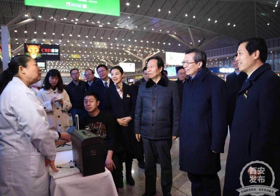 1月22日下午,正在北客站检查调研的省委常委、市委书记王永康等领导,在中国铁路西安局集团有限公司董事长刘生荣及北客站站长韩旭辉陪同下,来到市九院春运医疗点,王书... -