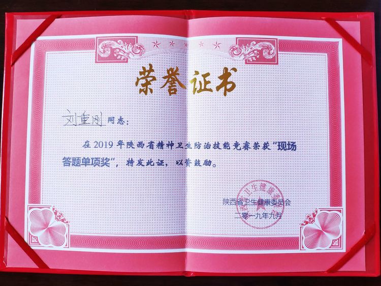 2019-09-30我院于朝晖、刘重刚两位同志代表西安市参赛队在陕西省精神卫生防治技能竞赛中荣获...