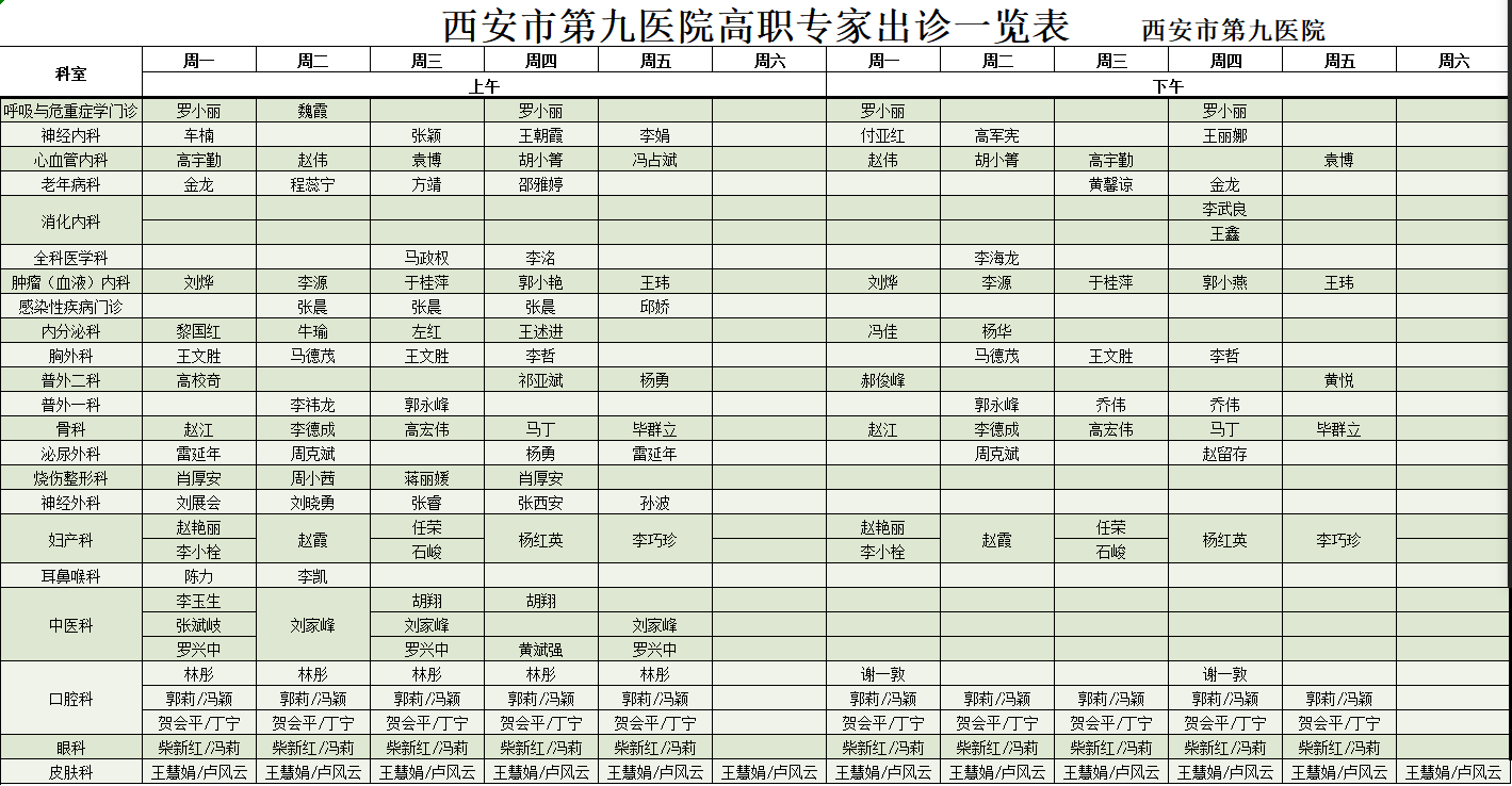 2020-10-16【门诊安排】门诊周末出诊表调整,请收藏