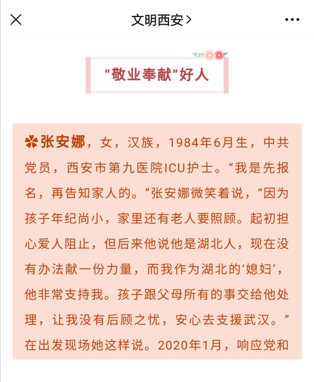 2021-02-10西安市碑林区委常委、副区长乔建宏一行 慰问市九院“西安好人”张安娜
