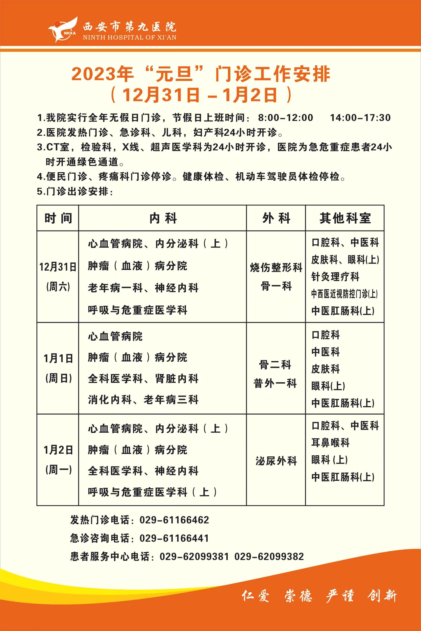 2022-12-31元旦门诊安排