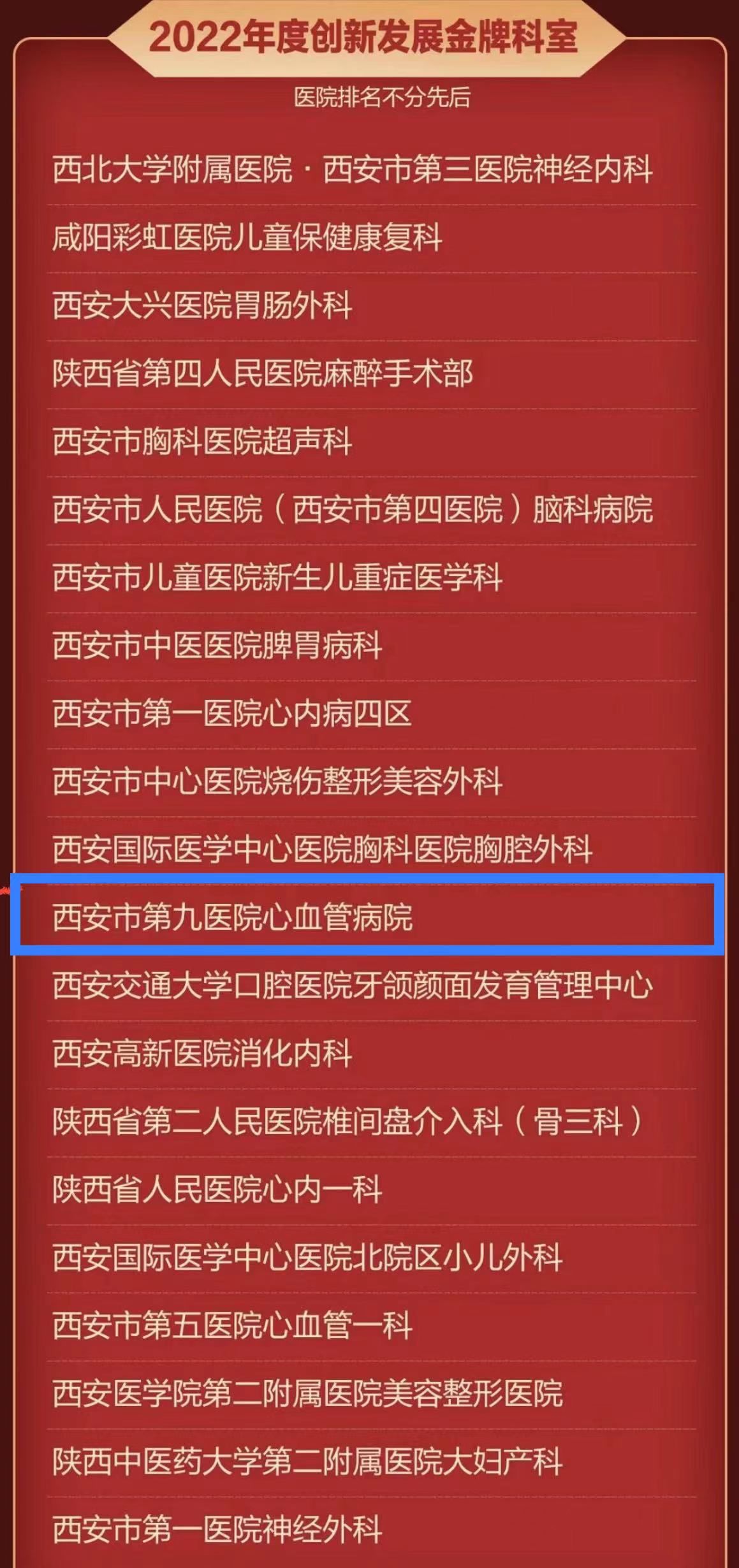 2023-01-13西安市第九医院心血管病院荣获2022年度创新发展金牌科室