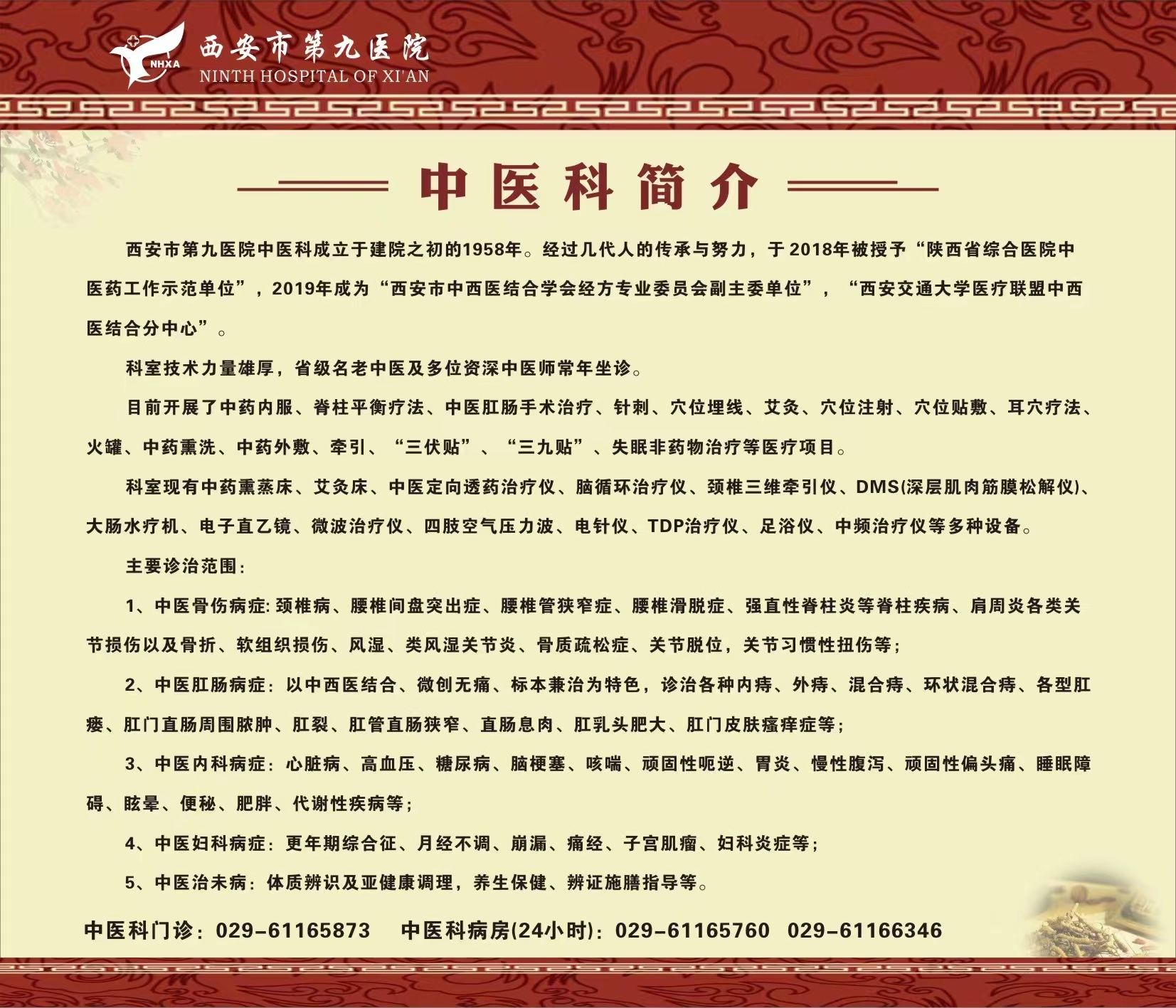 西安市第九医院 增设康复中心夜间延时门诊的通知