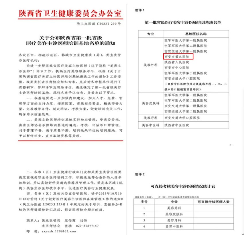 2023-10-13西安市第九医院获批陕西省“第一批省级医疗美容主诊医师培训基地”
