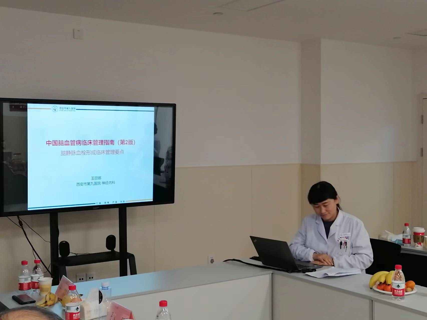 第六位讲者是来自于西安市第九医院的神经内科二区主任王丽娜主任,分享的题目是《中国脑血管病临床管理指南第2版--脑静脉血栓形成临床管理要点》,从脑静脉血栓的诊断、治疗、预防等多角度进行最新管理指南解读分享,尤其通过3例典型的病例,颅内不同部位的脑静脉血栓,不同的临床表现,和与会人员分享了一些治疗心得体会和目前的一些困惑。也引起了大家的共鸣和讨论。