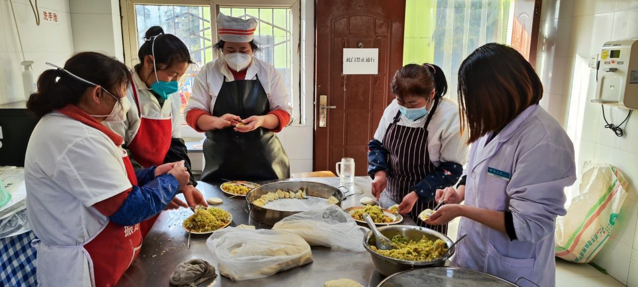 一大早,厨房的工作人员就开始忙了,揉面的、擀皮的、和馅的…….还有一些职工自发去帮忙包饺子,忙里忙外却又喜气洋洋,为的就是能在中午准时让患者吃上饺子,大家其乐融融,一派祥和。