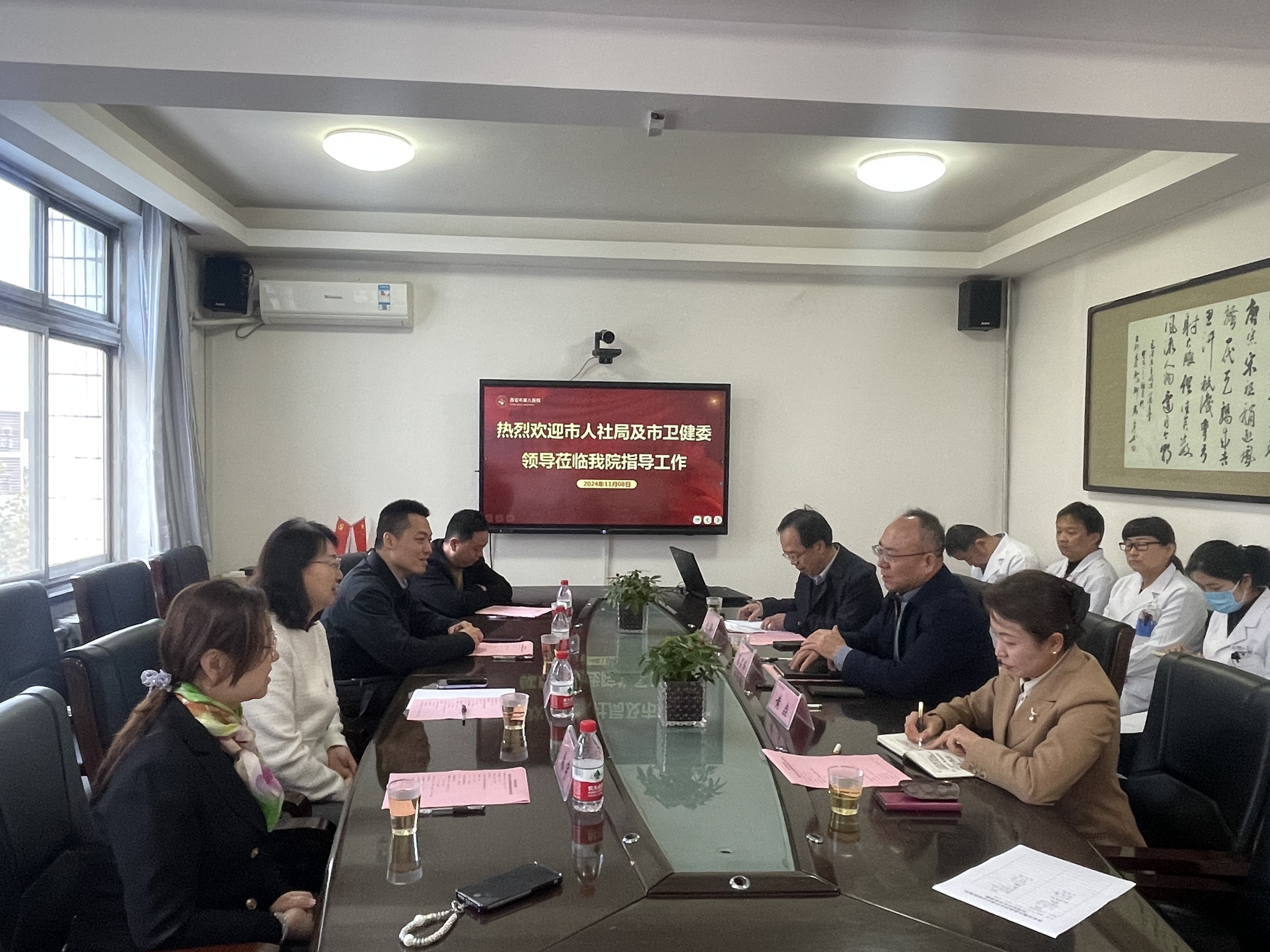 2024年11月8日,市人社局专技处处长韩雅娟、副处长赵斌、二级调研员朱宇、市卫健委二级调研员张勇一行到我院对申报博士后创新实践基地进行实地走访工作。院长冯占伟、副院长黄垚、副院长赵朝陪同走访。走访组通过参观心脏康复中心、病区建设、转化医学中心、与我院的科研团队座谈交流等方式,深入了解我院科研环境、设施生产经营及人才培养等相关情况。