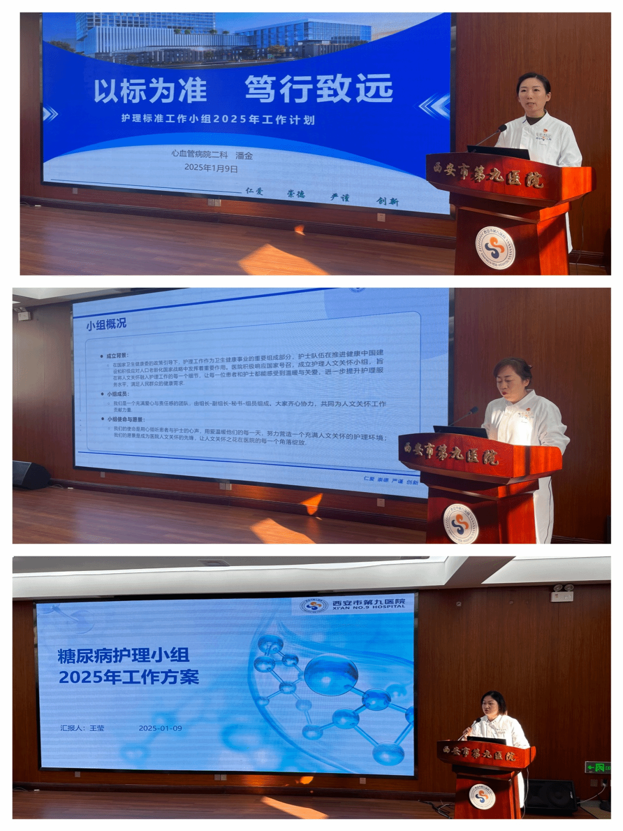 随着医院学科的快速发展,在原有十个护理小组的基础上,成立护理标准工作小组、护理人文小组、糖尿病护理小组,外科系统大护士长周会菊对新设小组组织架构进行了宣读,新任组长进行了表态发言并阐述2025年工作计划。