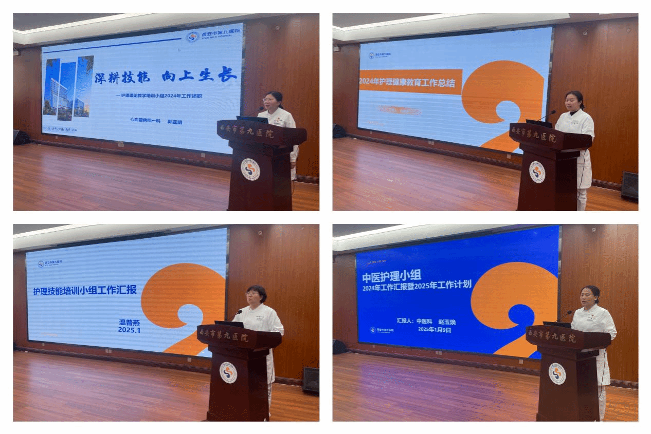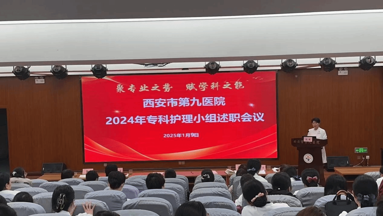 为落实医院《进一步改善护理服务实施方案(2023--2025年)》文件要求,加强护理专科建设,发挥专科护理小组的引领作用,1月9日,西安市第九医院护理部召开了2024年度专科护理小组年终工作总结暨2025年工作计划汇报会。主管院长赵朝、护理部主任陈艳、各系统大护士长、护士长、各护理小组组长、副组长、小组秘书100余人参加。会议由手麻系统大护士长张玉琴主持。