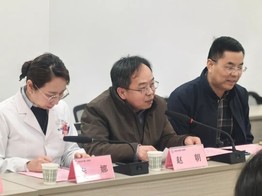 副院长赵朝在致辞中首先对平安健康(检测)中心刘维平总经理一行的到来表示热烈欢迎。赵副院长指出3月初双方签约建立医联体合作关系后,进行了深入坦诚的交流,在诸多方面碰撞出深化合作的火花,为后续合作共建奠定了良好基础。赵副院长表示市九院始终坚持质量立院、科教强院、改革兴院、特色办院,锚定群众看病就医的急难愁盼问题,通过抓改扩建项目建成落地促基础设施改善,以全面优化就诊流程、实施门诊弹性工作制提质效惠民生,通过开展“四随”和“四个当天”志愿服务提升患者的就医体验,聚焦学科建设补短板、拉长长板、锻造新板,深耕医、教、研协同发展,形成了心脑血管介入诊疗、急危重症创伤救治、肿瘤放化疗、血液净化、老年医学、医疗美容等技术优势的综合学科群。拥有省市级临床重点专科、重点学科、优势专科16个,医养结合、医疗美容和血液净化市级质量控制中心3个。赵副院长希望医院的各科室加强与平安健康(检测)中心的联系对接,互学互鉴,开展卓有成效的合作共建,促进双方的共同发展,不断满足群众更加优质、高效、便捷的医疗健康服务需求。
