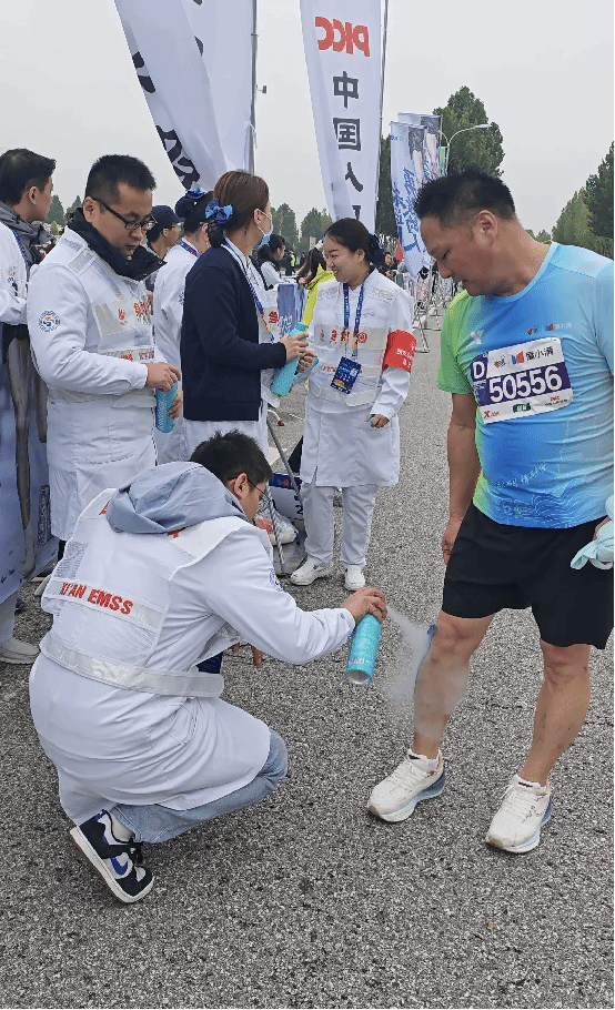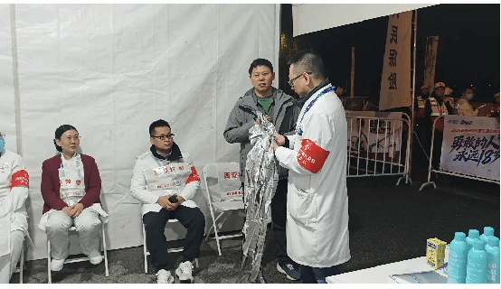 从赛事鸣枪到最后一名运动员冲过终点,市九院医疗保障团队始终全心投入、坚守岗位。他们密切观察每一位跑者的状态,一旦发现有急救需求的运动员,立即主动上前提供医疗服务,凭借充足的人员配置、完善的救援预案、丰富的保障经验与扎实的培训基础,快速响应突发情况,妥善处置伤病问题。