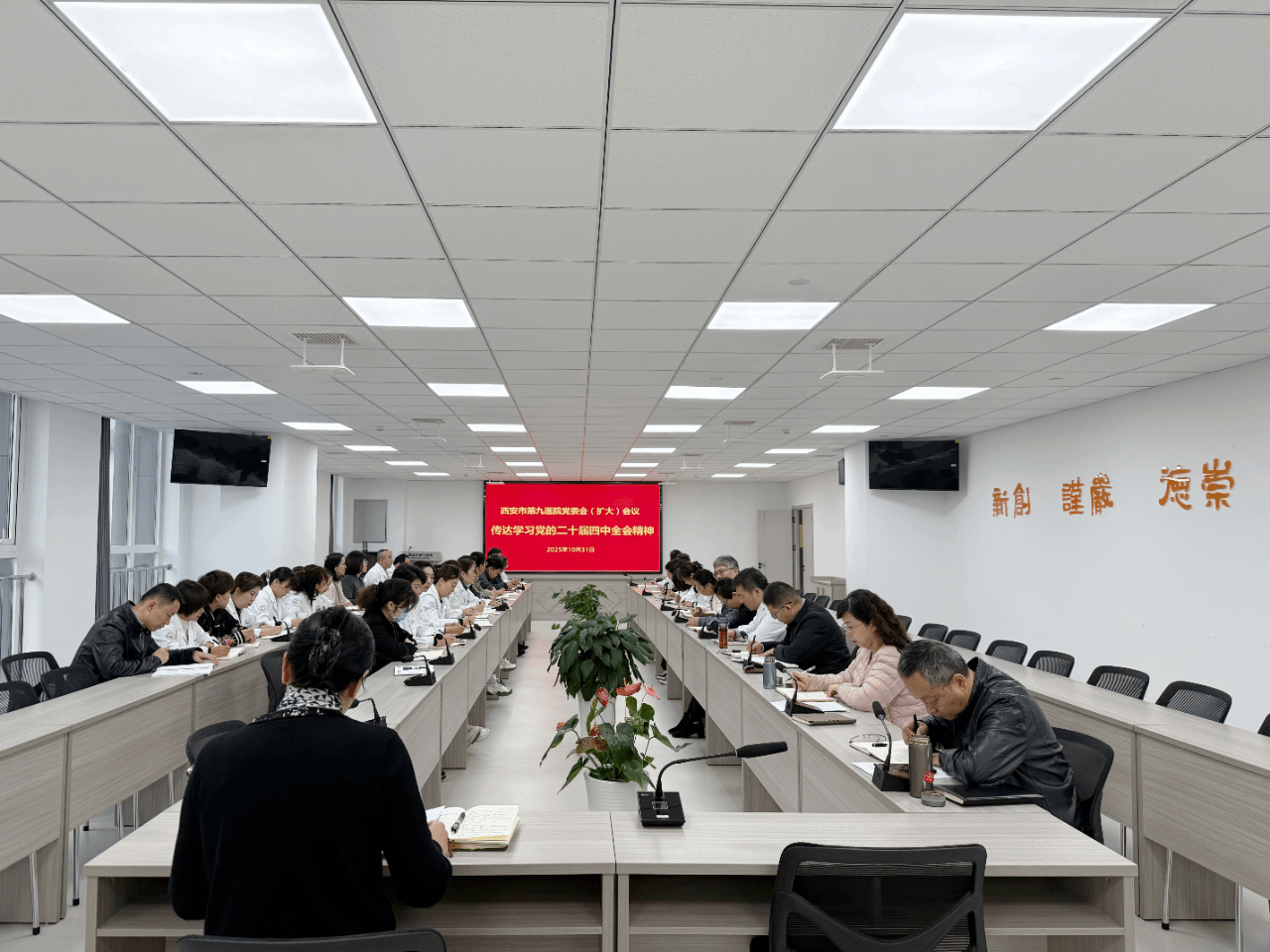 10月31日上午,西安市第九医院召开党委(扩大)会议,传达学习贯彻党的二十届四中全会精神。党委书记郝晓云主持会议,院领导、各党支部书记、行政后勤中层干部参加会议。