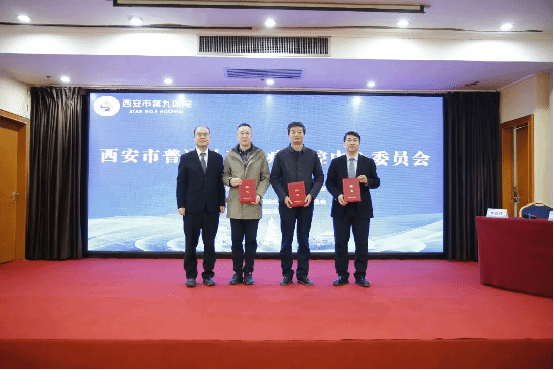 随后,赵朝副院长为西安市普通外科医疗质控中心主任委员、我院普通外科主任祁亚斌颁发聘书。祁亚斌主任委员依次为刘瑞廷(陕西省人民医院)、高炜东(西安市第三医院)、袁博(西安市中心医院)三位副主任委员颁发证书,标志着质控中心组织架构正式确立。
