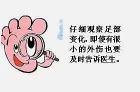 每天自查双脚:糖尿病足开始出现都会伴随着红肿、破皮现象,自己用镜子或者让家人帮助检查足部情况。一旦有破溃应尽早就医。