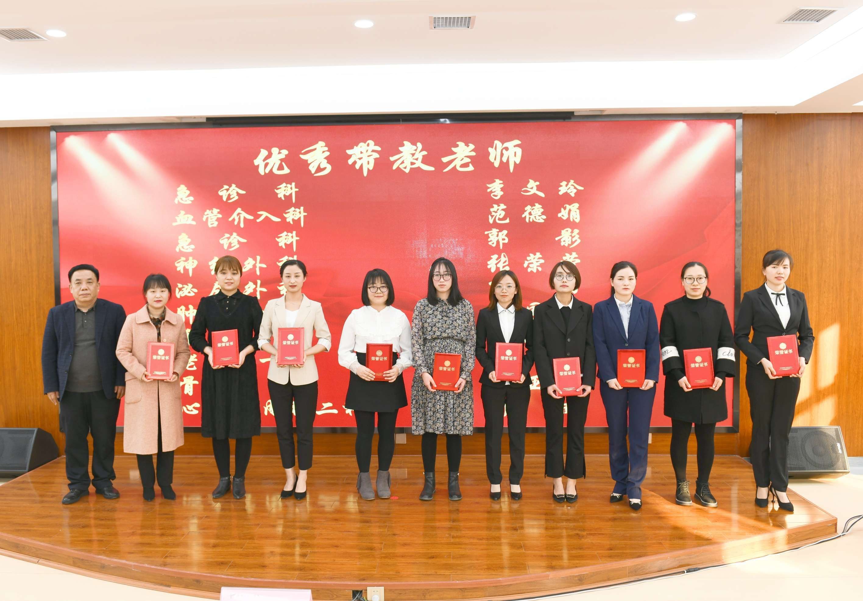 副院长吴周虎为急诊科李文玲、血管介入科范德娟、急诊科郭影、神经外科张荣荣、泌尿外科高丽、肿瘤分院高园园、手术室刘晓宇、老年病一科马绮、骨科王亚飞、心血管内科二科何楠10位优秀带教老师颁奖。