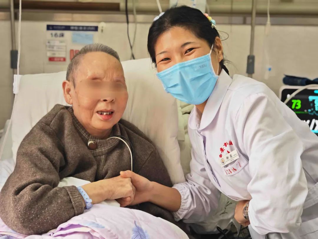 罗奶奶刚入院时家属焦虑不已,责任护士柳茜忙里忙外,耐心开导,用自己的休息时间向家属耐心讲解疾病的恢复的过程和情况,逐渐缓解了家属紧张的情绪。随着罗奶奶病情的好转,家属紧促的眉头也逐渐舒展,露出了笑颜。罗奶奶情况一天比一天好转,意识渐渐清醒,在与医护人员的朝夕相处中建立了深厚的情谊。
