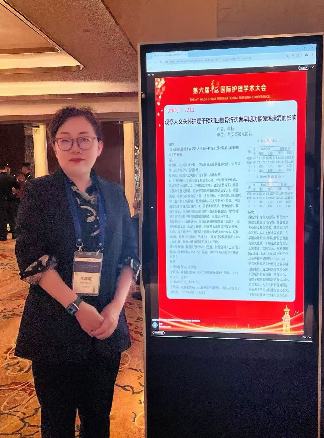 此次大会上,赵领珠护士长就临床工作结合护理研究作了精彩的“大会交流”,展现了我院专科护理的科研深度与实践创新力。樊楠护士长的人文关怀护理论文则入选“壁报交流”,其严谨的研究同样获得了同行关注。两位护士长的优异表现,是我院长期重视护理人才培养、鼓励临床科研的缩影。
